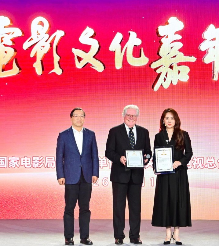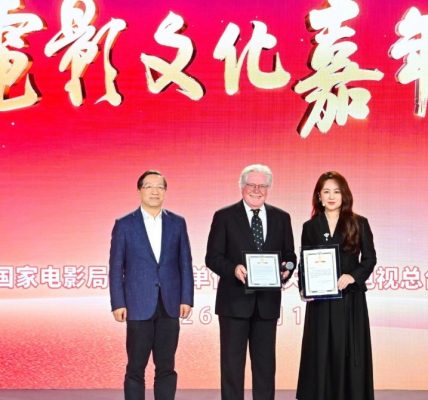 كرّم الوزير الصيني شين هايشيونغ، رئيس مجموعة الصين للإعلام، الفنان الكبير حسين فهمي، رئيس مهرجان القاهرة السينمائي الدولي، خلال فعاليات كرنفال ثقافة السينما في دلتا نهر بانغتسي 2026، المنعقد في مدينة تنغبو بمقاطعة تشجيانغ في جمهورية الصين الشعبية، والتي ينظمها…