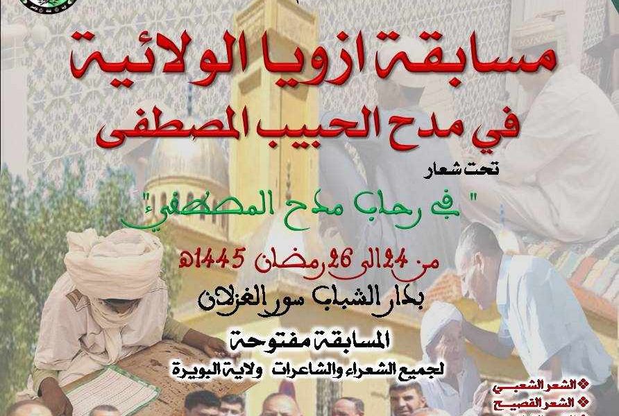من تنظيم الجمعية الثقافية “أوزيا”: الاعلان عن مسابقة “ازويا” الولائية في مدح الحبيب المصطفى” لمبدعي ولاية البويرة