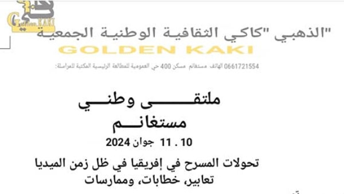 تنظم الجمعية الوطنية الثقافية “كاكي الذهبي” يومي 10 و11 جوان 202، بولاية مستغانم، ملتقى وطنيا عن “تحولات المسرح في افريقيا في ظل زمن الميديا، تعابير، خطابات وممارسات”.