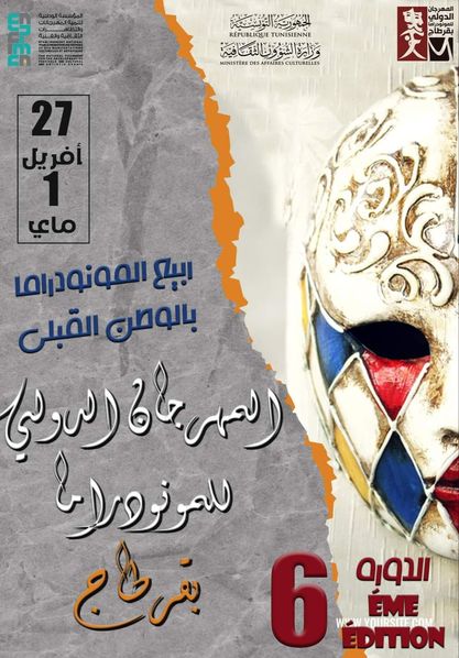 يشارك 16 عرضا مسرحيا من مختلف دول العالم في المسابقة الرسمية الدولية للدورة السادسة لمهرجان قرطاج الدولي للمنودراما، والتي ستحتضنها تونس العاصمة في الفترة الممتدة من 27 أفريل الجاري إلى الفاتح من شهر ماي الداخل، كما يشارك 12 عرضا مسرحيا في مسابقة النقاد و5 عروضا شرفية، إلى جانب، 17 عرضا في مسابقة أيام المنودرام الشبابي، و6 عروض مسرح المواطنة (المسابقة الدولية) و14 عرض مسرح الشارع للمسابقة الوطنية.