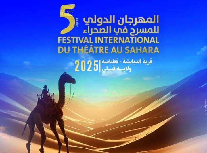 أعلنت إدارة المهرجان الدولي للمسرح في الصحراء، عن انعقاد دورته الخامسة في الفترة الممتدة من 30 أفريل/أبريل إلى 04 ماي/مايو 2025، بقرية “فطناسة” بولاية قبلي بالجمهورية التونسية.