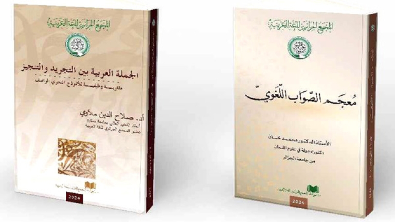 صدر عن المجمع الجزائري للغة العربية، مؤلفان علميان جديدان، هما: “معجم الصواب اللّغوي” للأستاذ الدكتور محمد خان، و”الجملة العربية بين التجريد والتنجيز” (مقاربة وظيفية للأنموذج النحوي الواصف) للأستاذ الدكتور صلاح الدين ملاوي.