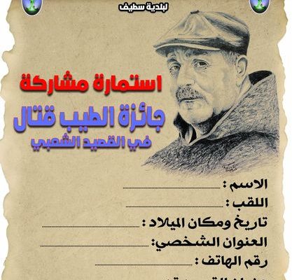 فتح المهرجان الثقافي الوطني لاغنية الشعبي اليوم (2 ماي) باب التسجيل للمشاركة في مسابقة الطبعة الثالثة عشر للمهرجان، حيث ستباشر ادارة المهرجان في استقبال طلبات الترشح للمشاركة الى غاية 30 سبتمبر المقبل، وذلك عبر البريد الالكتروني الخاص بالمهرجان: