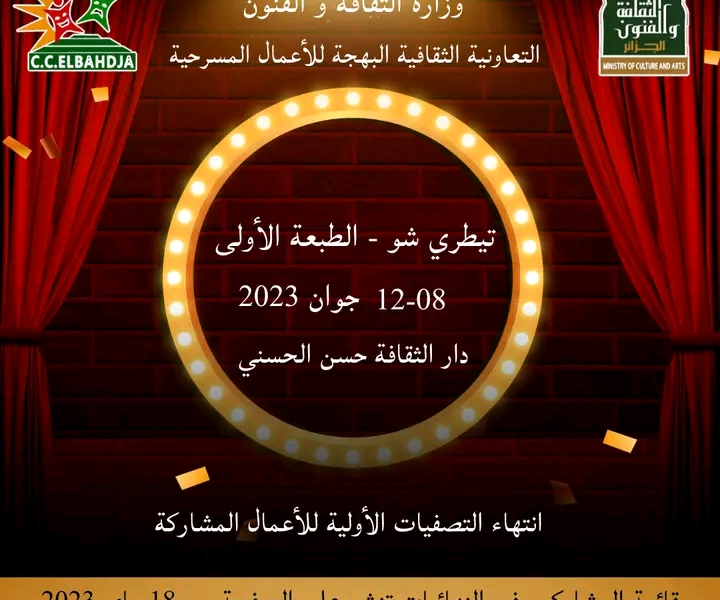 تحتضن دار الثقافة “حسن الحسني” بالمدية في الفترة الممتدة من 8 إلى 12 جوان الداخل، الطبعة الأولى للأيام الوطنية للوان مان شو “تيطري شو” من تنظيم التعاونية الثقافية البهجة للأعمال المسرحية بالمدية.