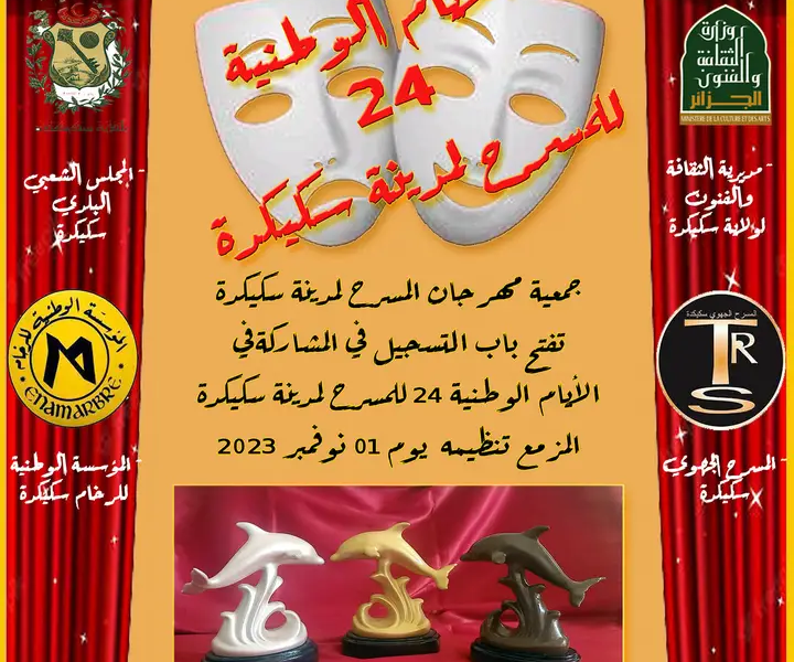 تعلن جمعية مهرجان المسرح لمدينة سكيكدة بالجزائر عن فتح باب التسجيل للمشاركة في الطبعة الـ24 للأيام الوطنية للمسرح لمدينة سكيكدة، والمزمع تنظيمها في الفترة الممتدة من 1 إلى 5 نوفمبر / تشرين الثاني 2023 بمدينة سكيكدة الساحلية.
